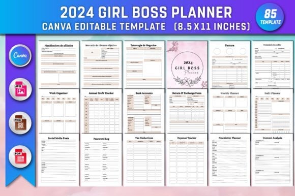2024 Girl Boss Planner Canva KDP Interiors. You will get high-quality print-ready files. Everything is 100% customizable Orginal File,