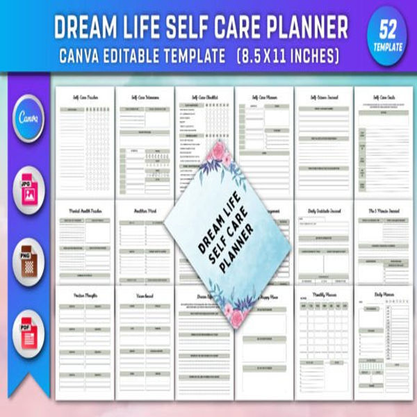 Editable Dream Life Self Care Planner Canva KDP Interiors. You will get high-quality print-ready files. Everything is 100% customizable Orginal File,